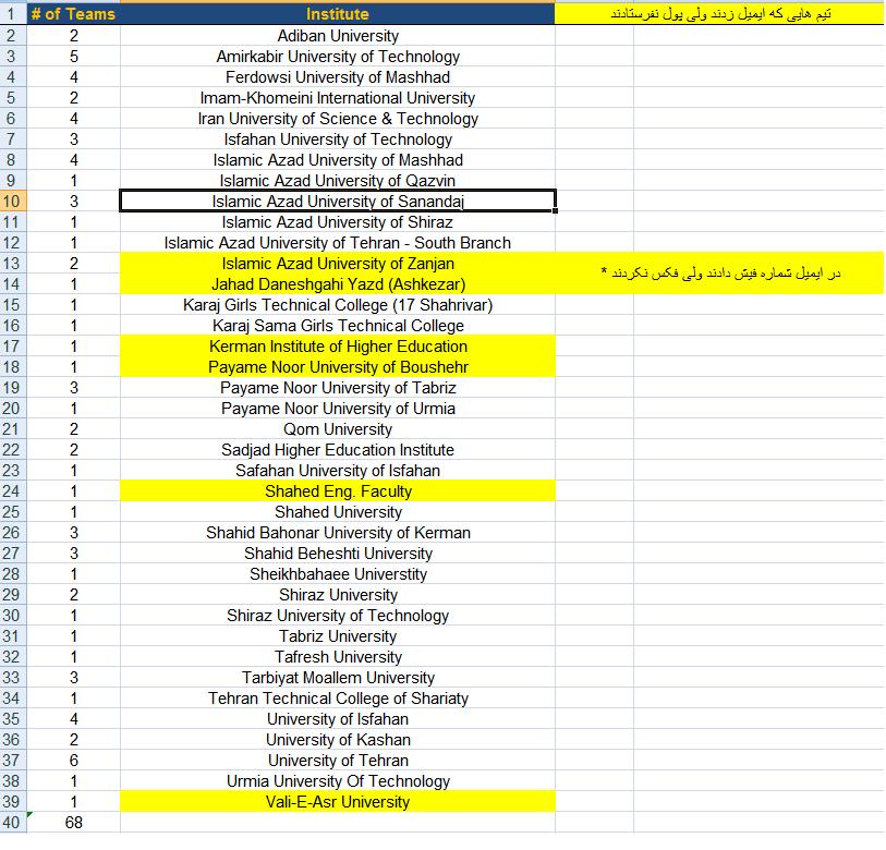 اگر میخواهید اطلاعات تیمتان در مسابقهی اینترنتی صحیح دیده شود، حتماً تا پایان روز